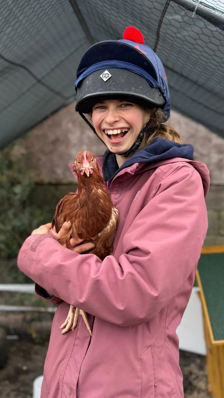My role involves looking after the horses, the chickens, and the site. You may see me feeding the horses, mucking out the stables, looking after the fields and site. My role as the apprentice groom enables me to develop and learn new skills on how to look after and care for the horses on site